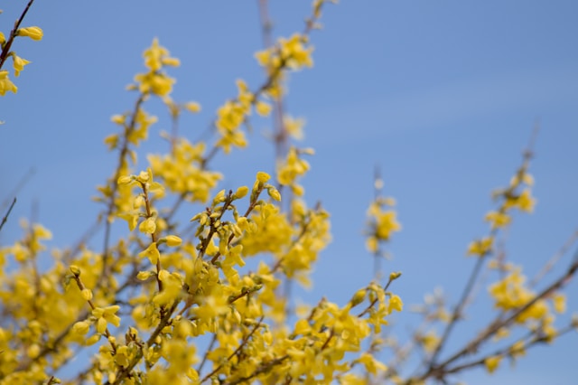 수도권의 개나리는 첫 꽃망울이 터지고 나면 따뜻한 봄 햇살을 받고 불과 며칠 만에 산책로 전체를 노란 융단으로 덮어버리는 엄청난 속도를 보여줍니다.